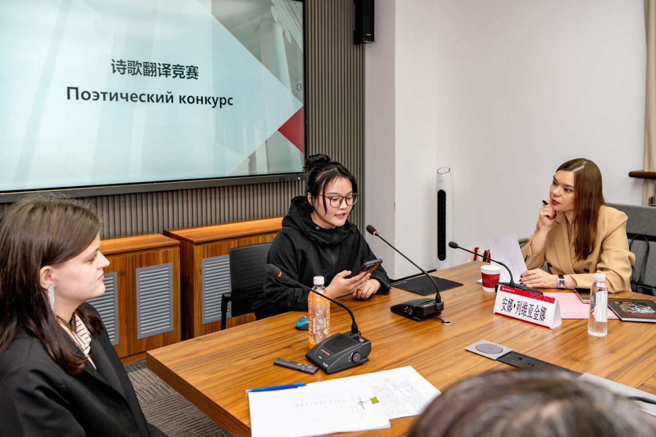 Затем в одной из аудиторий Института состоялся поэтический конкурс. Участники прочитали 10 стихотворений из первого сборника Лариссы Андерсен «По земным лугам» в собственном переводе на китайский язык. Всем студентам Фонд вручил сертификаты об участии.